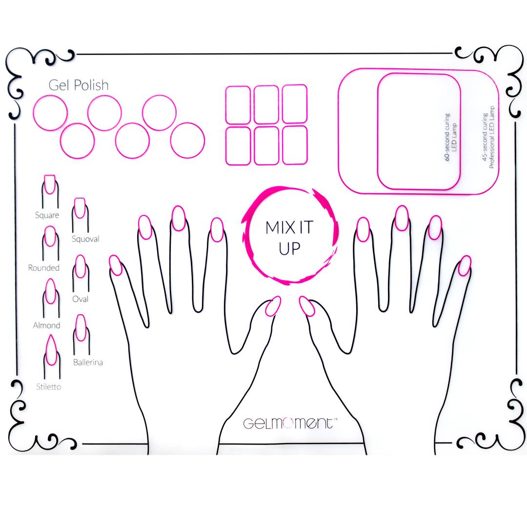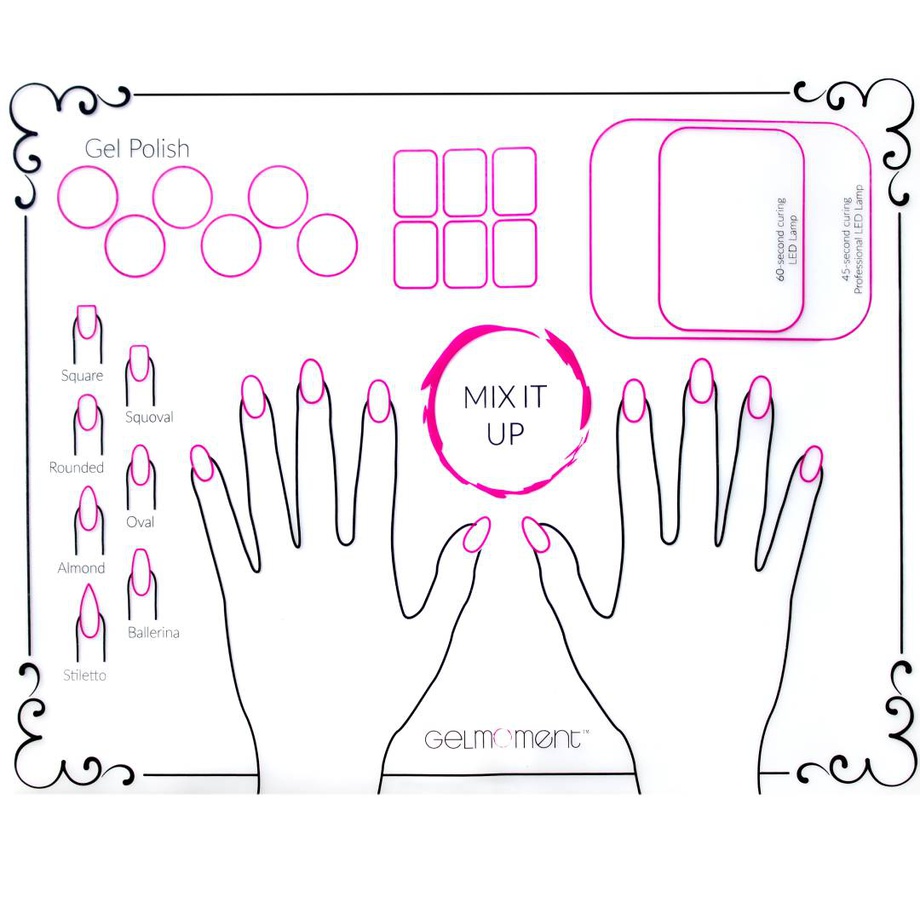 Our new Silicone Mat makes nail art and clean up a breeze! This mat is washable, reusable, and professional! There are sections for practicing your nail art as well as mixing colours and laying out your supplies. Purchase several and use them as place-mats at your parties or events!